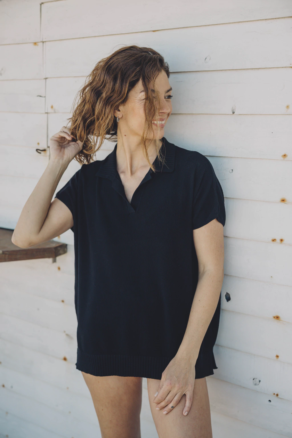 Su cuello polo clásico aporta un toque de distinción, mientras que la trama semitranslúcida tejida en viscosa le da ligereza y un acabado delicado que realza tu estilo.